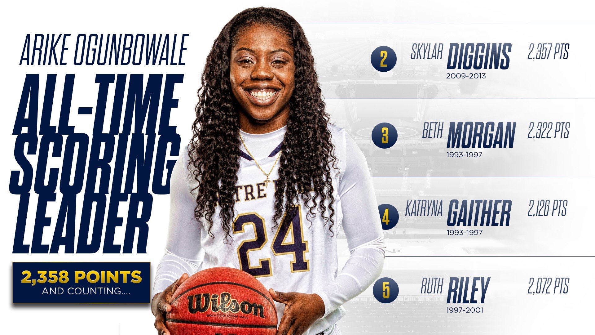 Arike added to her stellar career when she became the Women’s Notre Dame Basketball all-time scoring leader on Friday. She passed Skylar Diggins with 2,358 points and counting. Congrats to Arike on an amazing accomplishment. I’m excited to see how much more points Arike will add to her total before she plays her last game in South Bend.